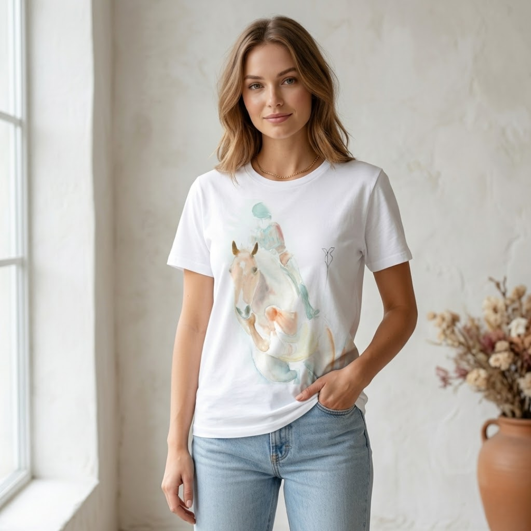 Início / Roupas / Camisetas / Camiseta Cavalo Saltando